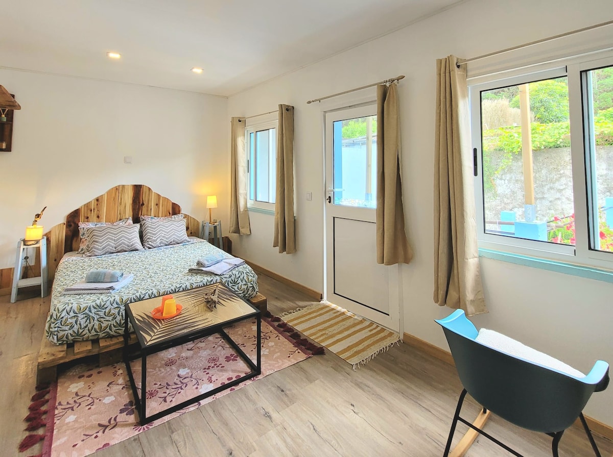 Walking distance from the main natural attractions in Furnas, this cozy & elegant studio, located in a quiet zone, is equipped with everything you'll need for an unforgettable experience, discovering one of the most amazing places you'll ever visit... It's perfect for couples (with up to 2 children) or a group of friends who have no problem sharing the same room.