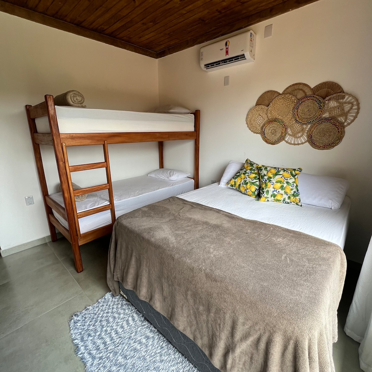 Bangalôs recém construidos para até 4 pessoas com cama queen size, bicama, roupa de cama e banho, cozinha completa e utensílios, ar condicionado, ventilador de teto, Wi-Fi e   SmartTV 32". Inspiradas nas moradas de pescadores, nossos bangalôs tem o charme e a simplicidade unidos ao conforto e uma experiência única, onde você viverá momentos inesquecíveis. Localizada na falésia de Corumbau á 300m da praia, estamos perto também, do centrinho com restaurantes e mercados.