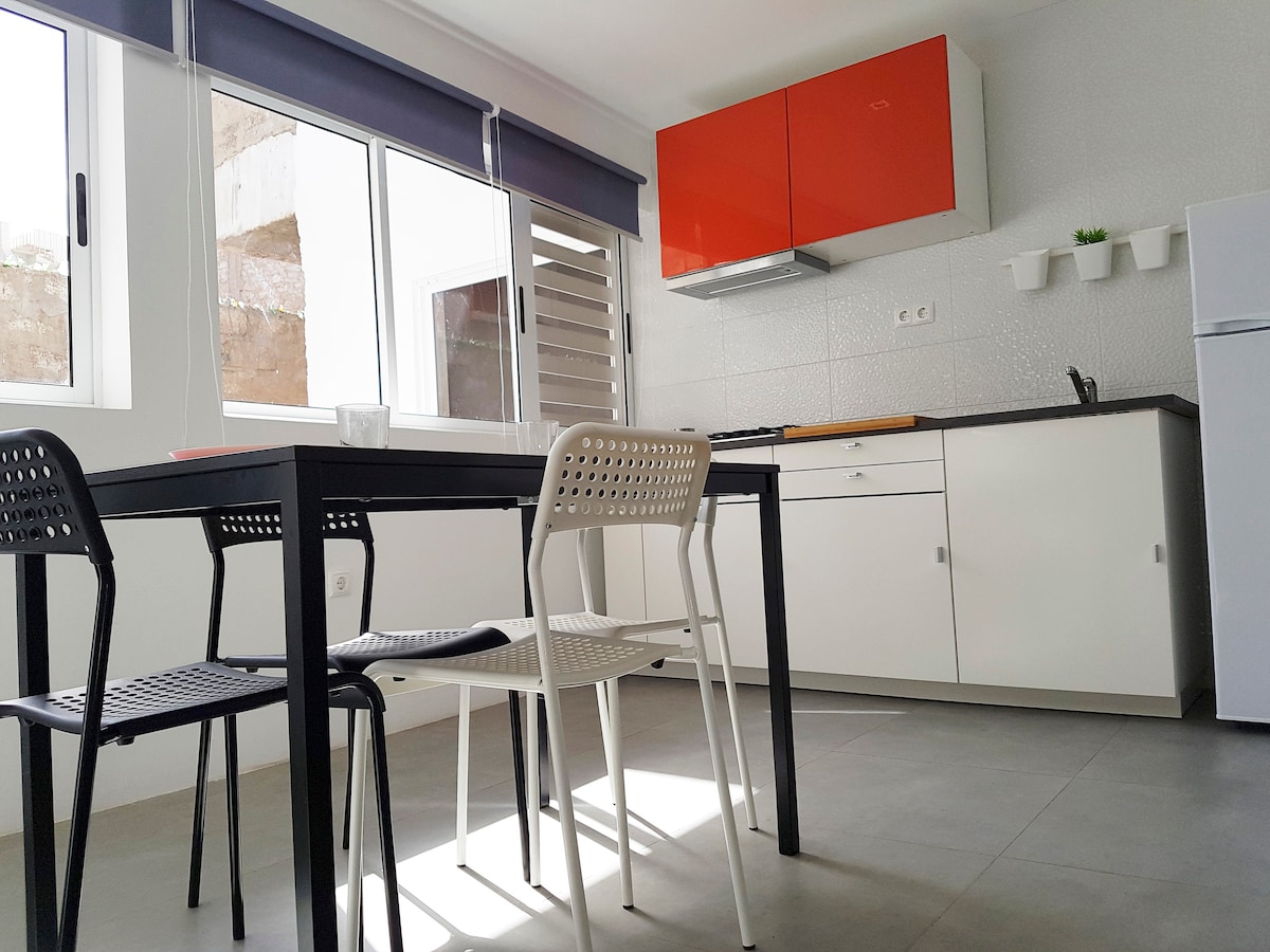 Apartamento T0 moderno com 16 m2 em área residencial premium, a 10 minutos a pé da Praia da Laginha e do centro histórico da Cidade. Bem mobilado com quarto acolhedor en suite com casa de banho e bem equipado. Quarto com cama de casal e closet. Área com sofá para duas pessoas, TV, frigobar, cafeteira, lava-louças, fogão . Entrada independente, através de um jardim, com pequeno pátio ensolarado, ideal para um relax de fim de dia.