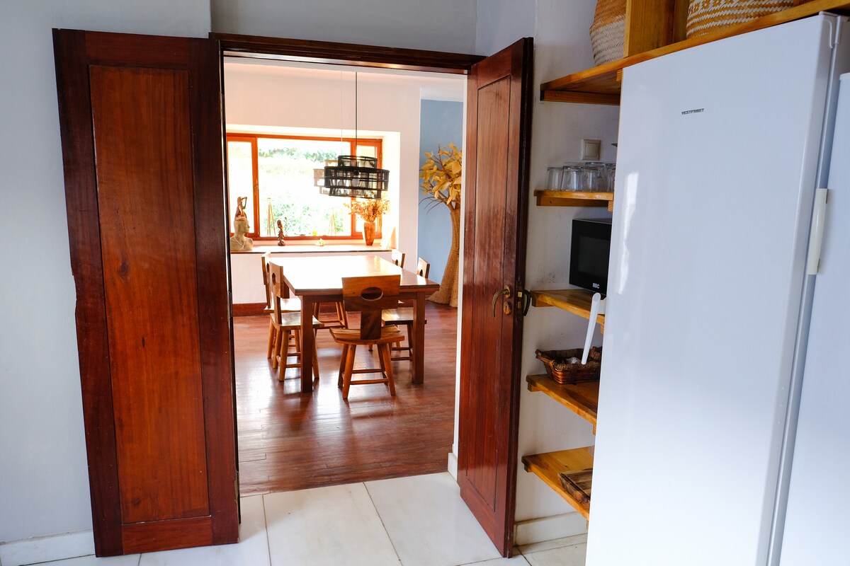 Our small sweet little house, which is located on the property Jardim Mixara, has everything you need to relax for a few days or weeks. Alone or as a couple or as a small family with a child (above 5 years cause of the sheep staircase) It is surrounded by a constantly growing permaculture garden, an enchanting view of the Indian Ocean and plenty of space to hang your hammock. Jardim mixara is a small reboot oasis where you can rest and reconnect with nature and yourself