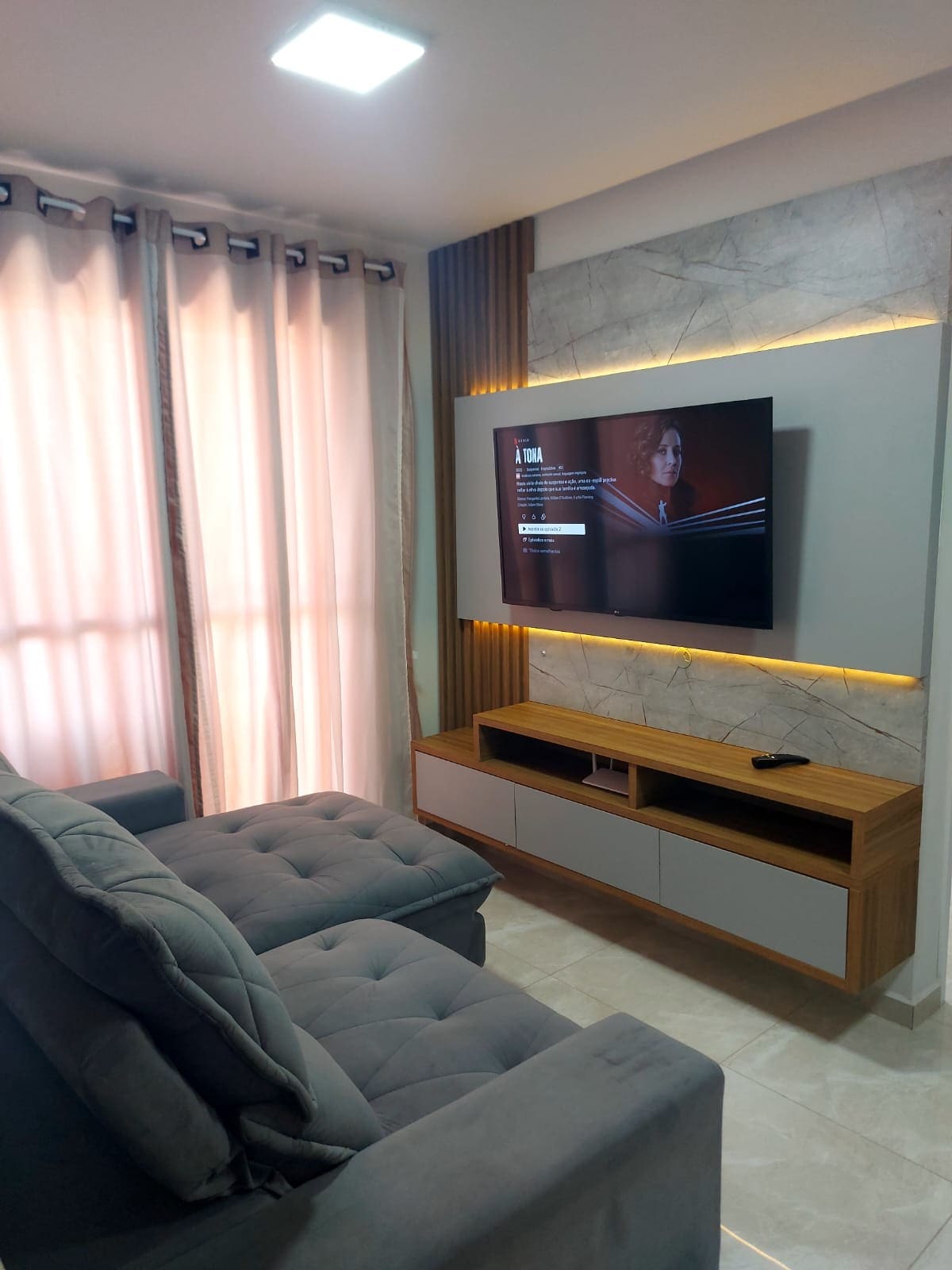 Apartamento moderno e equipado com vista deslumbrante, especialmente para o pôr do sol. Localização excelente, próximo a farmácias, academia, UPA, padaria e frutaria. Estacionamento incluído. O condomínio oferece mercado e espaço pet. Priorizamos a reciclagem, com lixeiras específicas. Possui TV na sala e no quarto, além de um Nintendo para diversão. O home office é bem equipado, com tela extra, mouse pad e cadeira gamer. Ar condicionado na sala (frio) e ventiladores/aquecedores nos quartos.