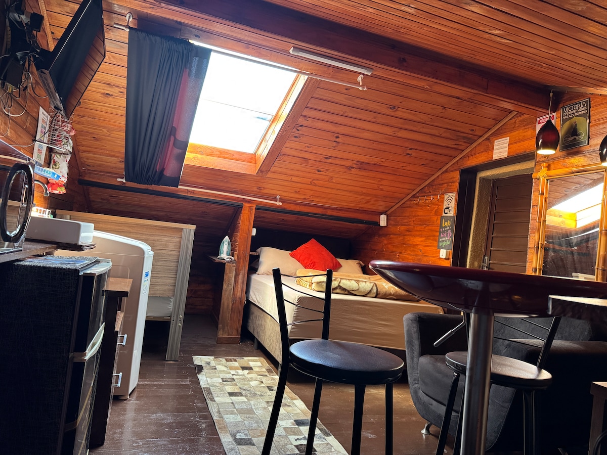 Se você busca um cantinho único, acolhedor e cheio de charme, acaba de encontrar! Este ático de 35m² é um verdadeiro refúgio no topo da casa — um espaço compacto, funcional e revestido inteiramente em madeira, que exala conforto e aconchego em cada detalhe. Com uma janela no telhado que deixa a luz natural entrar suavemente, o ambiente é perfeito para relaxar ou trabalhar com tranquilidade. A decoração é minimalista e acolhedora, ideal tanto para casais quanto para viajantes solo e mochileiros.