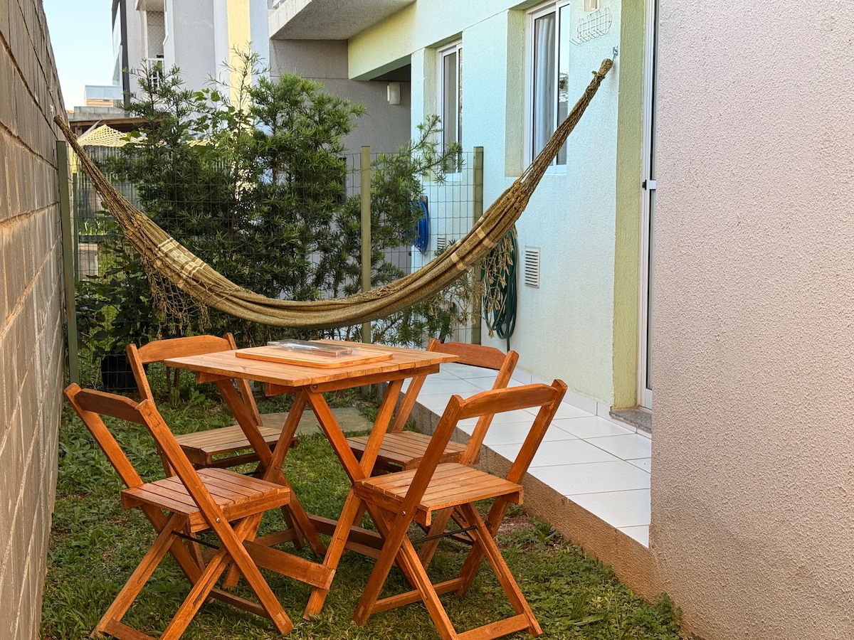 Apartamento térreo com toda a comodidade, cozinha completa com máquina de lavar louça. Lava e seca para roupas, churrasqueira e cervejeira na área externa, dois quartos aconchegantes. Apartamento conta com ar condicionado, e um belo espaço externo privativo. Ideal para uma hospedagem de qualidade. Na entrada de Ponta Grossa, próximo ao acesso para Curitiba e norte do Paraná, perto de Supermercado, lotérica, restaurantes e padarias. Condomínio seguro, conta com 1 vaga de garagem.
