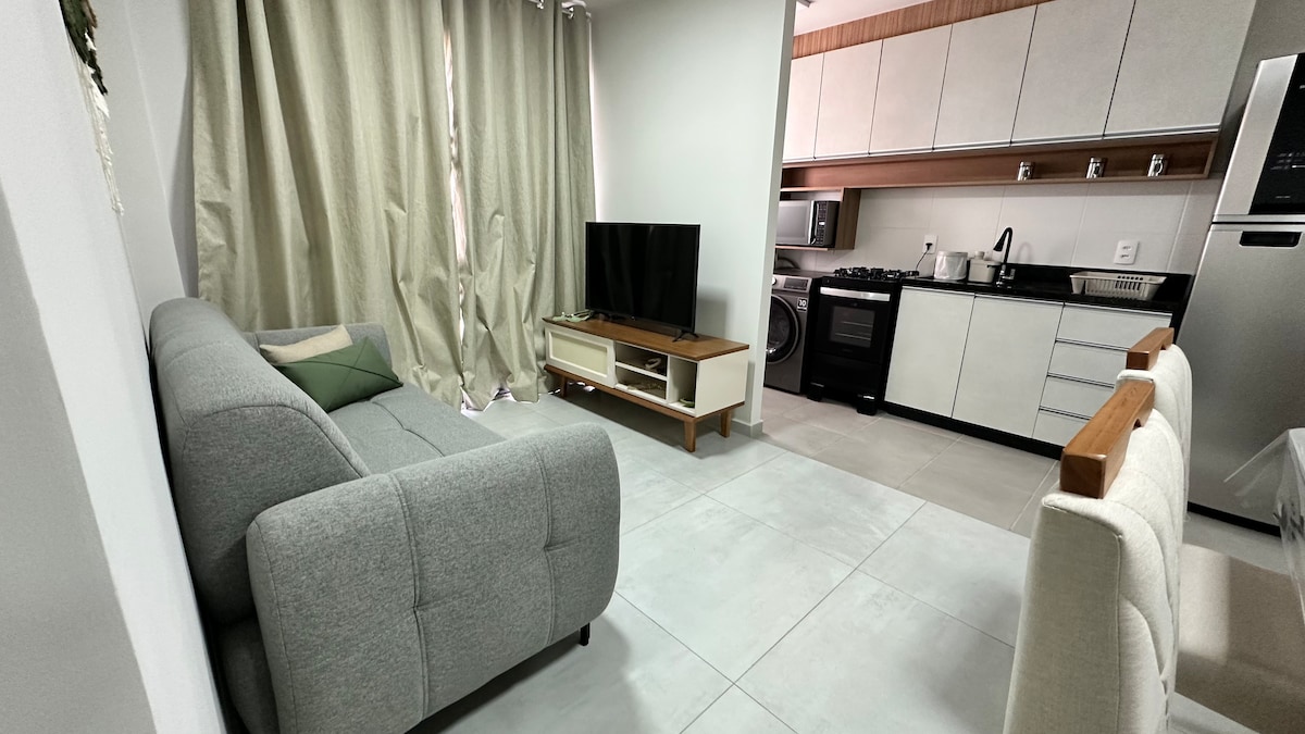 Apartamento próximo ao Campus UEPG Uvaranas, a supermercados, lavanderia e as saídas para diversos pontos turísticos da cidade. Um espaço confortável, estilo clean.