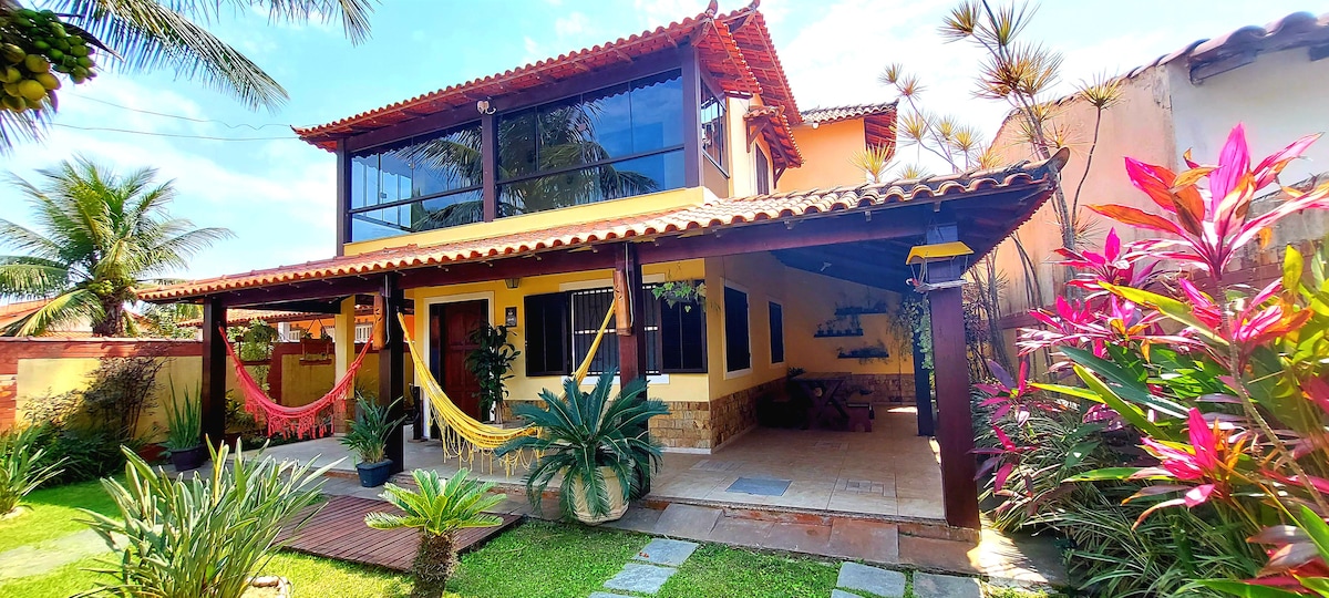 Nossa casa de veraneio, aconchegante, perfeita para descansar e se divertir com piscina, churrasqueira moderna, rede, quintal amplo com varanda na frente e nos fundos, sofá e mesa de jantar, além de TV com Chromecast (Netflix/Youtube/+), Wi-Fi, dois quartos, dois banheiros. A 500m da praia e cerca de 800m do centro comercial da região. Mercados e padarias a 2 minutos de distância.* Sejam bem vindos!!! E conheça nosso famoso pé de acerola!