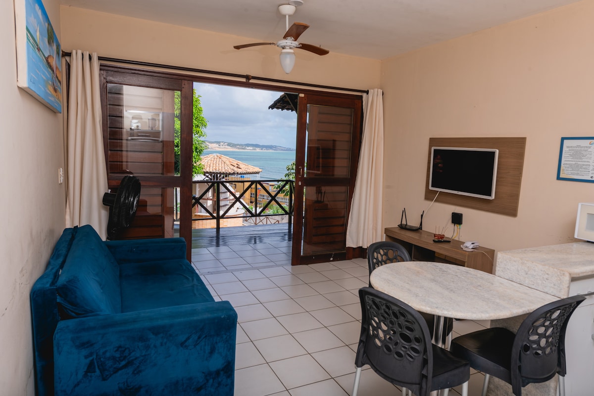 Relax in this tranquil, safe space with exclusive access to the sands of Ponta Negra Beach. Just few steps from restaurants, bars, small markets, craft shops, “forró” dance spots, shopping, the Convention Center and Police Station. It's the perfect starting point for all tours. The apartment features a balcony with views of the sea and “Careca” Hill; Wi-Fi, air conditioning, Smart TV, essential equipment and utensils. Access to parking, garden, pool, terrace, and staircase to the beach.