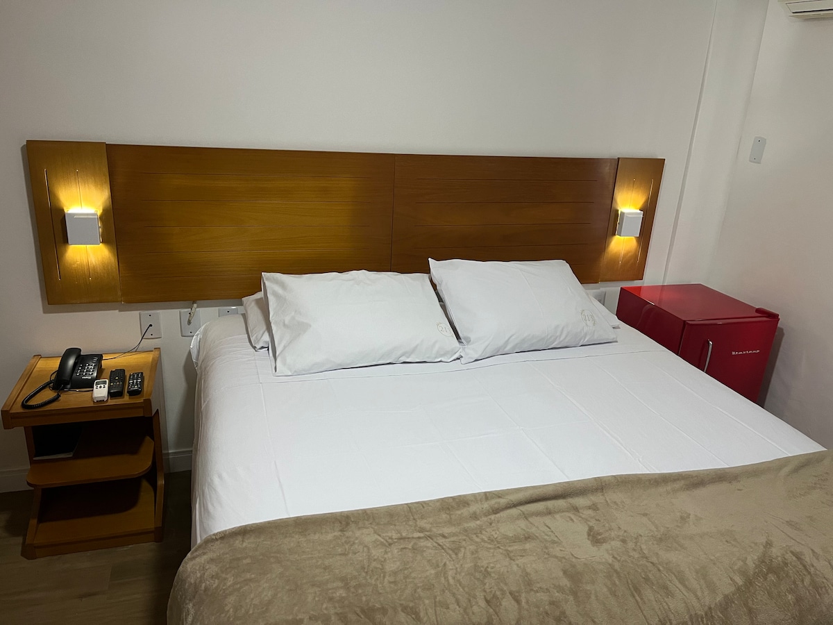 Quarto Triplo confortável e completo, perfeito para famílias, amigos ou viagens a trabalho! O espaço conta com 1 cama King e 1 cama de solteiro, acomodando confortavelmente até três pessoas. O ambiente possui ar-condicionado, Wi-Fi gratuito,TV, além de um espaço dedicado para trabalho. Tem localização privilegiada e bem localizada, fica próximo à praia, restaurantes e comércios. Conforto, praticidade e ótima localização em um só lugar. Reserve já e aproveite uma estadia inesquecível!