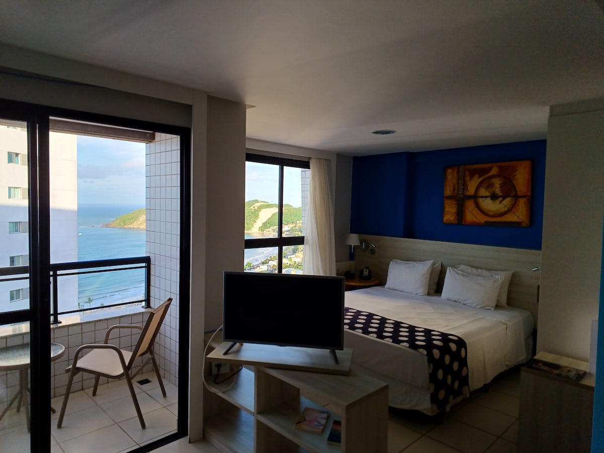 Flat amplo, aconchegante e recém-reformado em excelente localização de Ponta Negra, perto da vida noturna, restaurantes e padarias, com linda vista para o Morro do Careca. Ideal para casais e também para viagens de lazer ou trabalho, o espaço conta com antessala, privacidade total, internet exclusiva de alta velocidade, TV com streaming e canais pagos, além de estacionamento rotativo. Uma excelente escolha para sua hospedagem em Natal.
