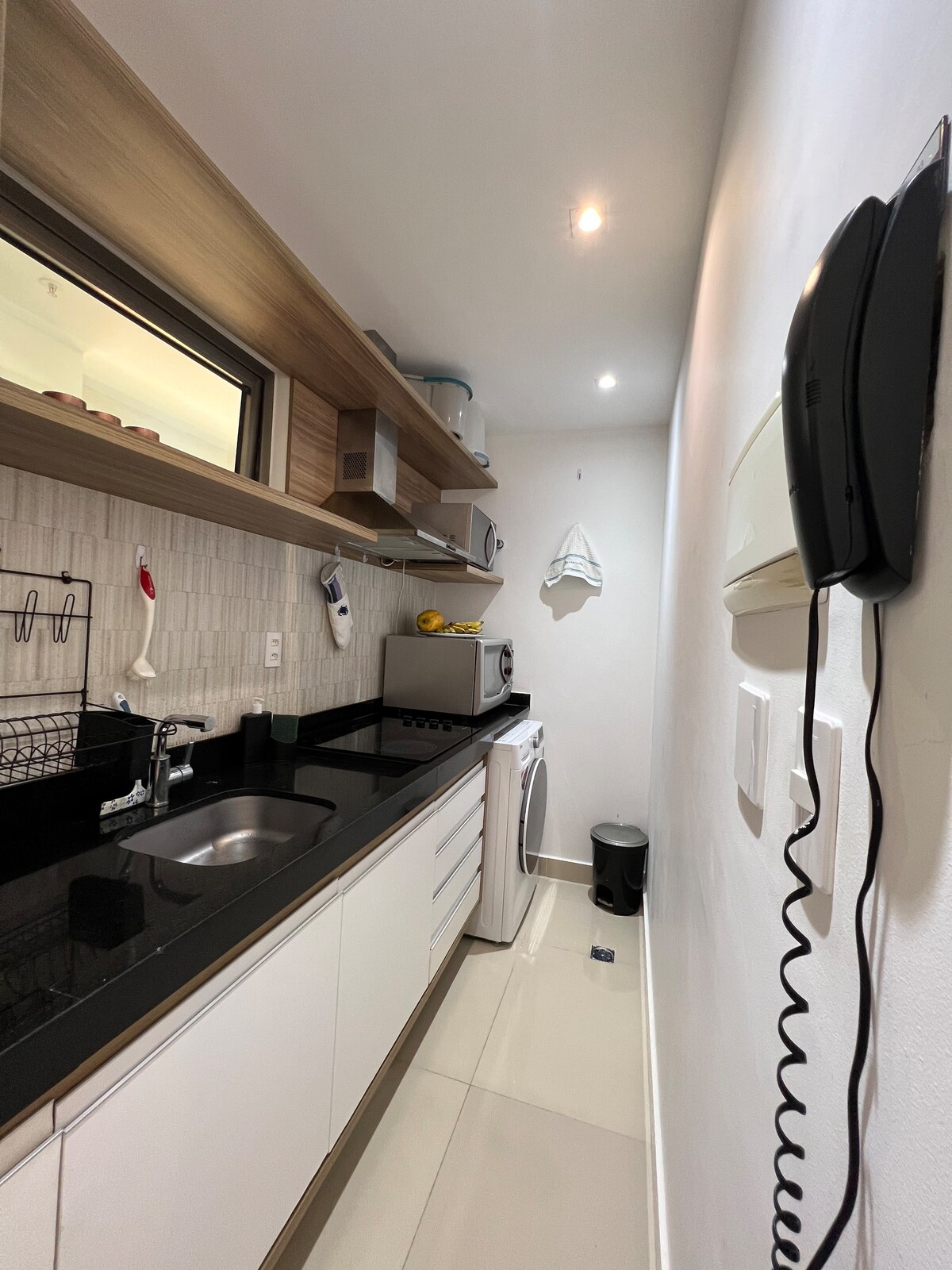 - Flat espaçoso, com 40m2 - A aproximadamente 300m da Praia de Ponta Negra - Totalmente mobiliado, decorado, com iluminação e móveis projetados; -Cozinha equipada com: cooktop, microondas, liquidificador, sanduicheira, cafeteira e todos os utensílios de cozinha - Sala de estar: sofá, mesa para refeições com 4 cadeiras, armário e ventilador - Smart TV 4K 43" (giratória permitindo acesso ao quarto ou sala de estar) - Wi-fi - Ar-condicionado - Varanda - Cortina blackout