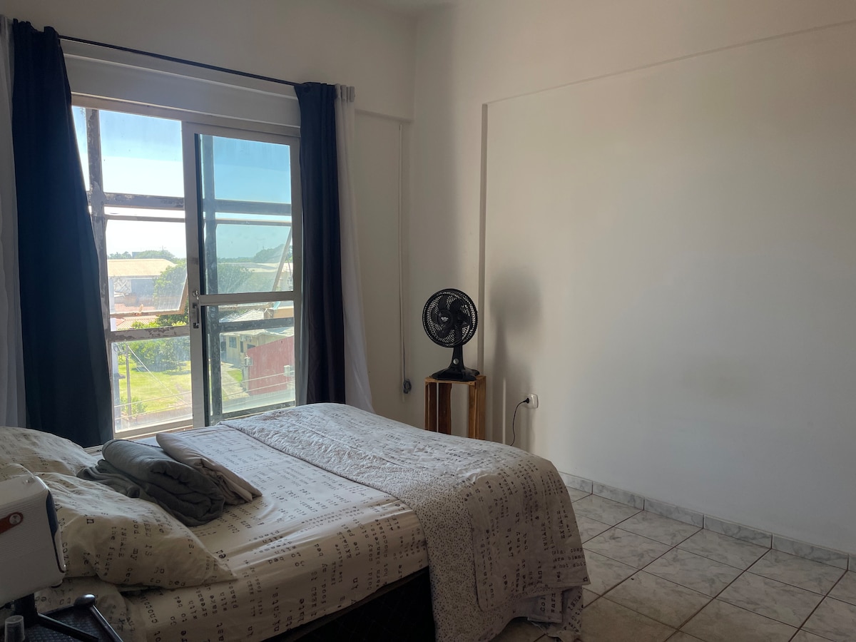 Casa aconchegante a 5 km do centro, com 2 quartos e 2 banheiros, ideal para até 5 pessoas (2 camas de casal e 1 de solteiro). Ambientes ventilados, com ar-condicionado, cozinha completa, Wi-Fi e garagem coberta. A casa é totalmente privativa. Moro em outra casa no mesmo terreno. O acesso é pela garagem, usada apenas como passagem compartilhada.
