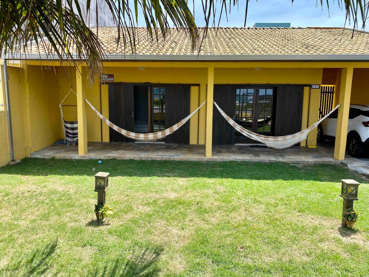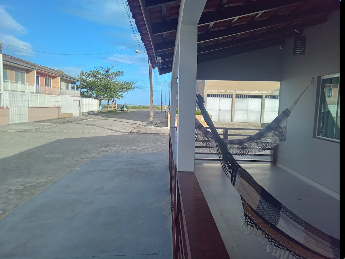 Casa ampla a duas quadras da praia! 🌅🏖️ Possui 4 quartos com cama de casal (sendo uma Queen size), um sofá cama e um colchão de solteiro na sala, totalizando leito para 11 pessoas. Venha relaxar com toda a sua família nesta acomodação tranquila.