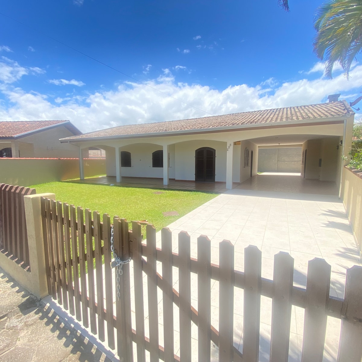 Uma casa perfeita para descansar, ao som das ondas do mar. E também para... surfar! Você já pensou em aprender a surfar? Nossas ondas são fáceis, e a praia é rasinha. Em frente à casa, há uma laje natural de pedras, perfeita para pescaria com anzol e tarrafa. De junho a agosto, é possível observar aqui em frente, a pesca da Tainha! Estamos no centro da cidade, a 1 quadra de restaurantes, supermercados, bancos, lojas, e Mercado de Pescados. Toda a comodidade de passear a pé, na praia e na cidade!