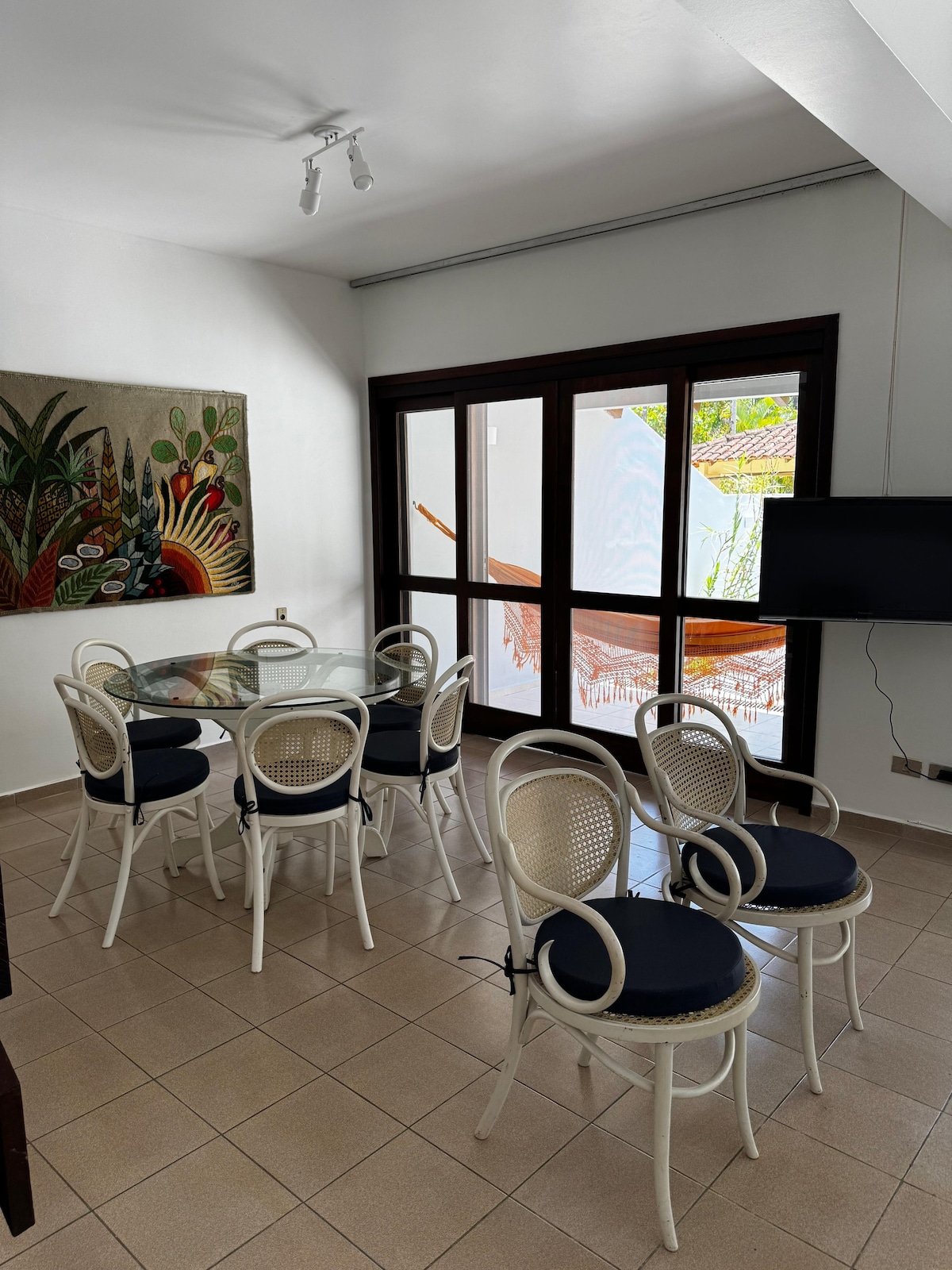 Sobrado beira-mar, piscina e espaço gourmet integrado. Para 12 pessoas. Garagem para 4 carros. No térreo: cozinha, sala de TV e jantar em conceito aberto, banheiro social e lavanderia nos fundos. Pavimento superior: duas suítes com closet e uma suíte com vista para o mar. Terraço com amplo espaço e uma vista deslumbrante. Os quartos dispõe de camas de casal e dois colchões de solteiro cada. TRAZER TRAVESSEIROS, ROUPA DE CAMA E BANHO