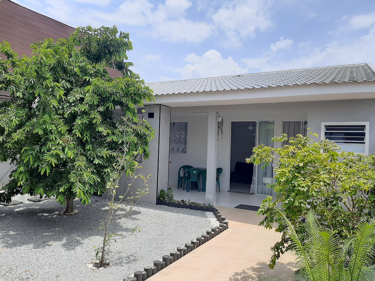 Casa térrea com ambientes amplos e integrados no Balneário Atami Norte, com cozinha equipada, sala de jantar, sala de televisão, lavabo, área de serviço e 02 suítes independentes com ar condicionado portátil, sendo que cada uma das suítes possui 01 cama de casal e 01 cama de solteiro. Casa possui piscina com cerca para segurança das crianças, ótima churrasqueira, redes de balanço com vista para um lindo jardim. Uma casa com alma de praia!!!