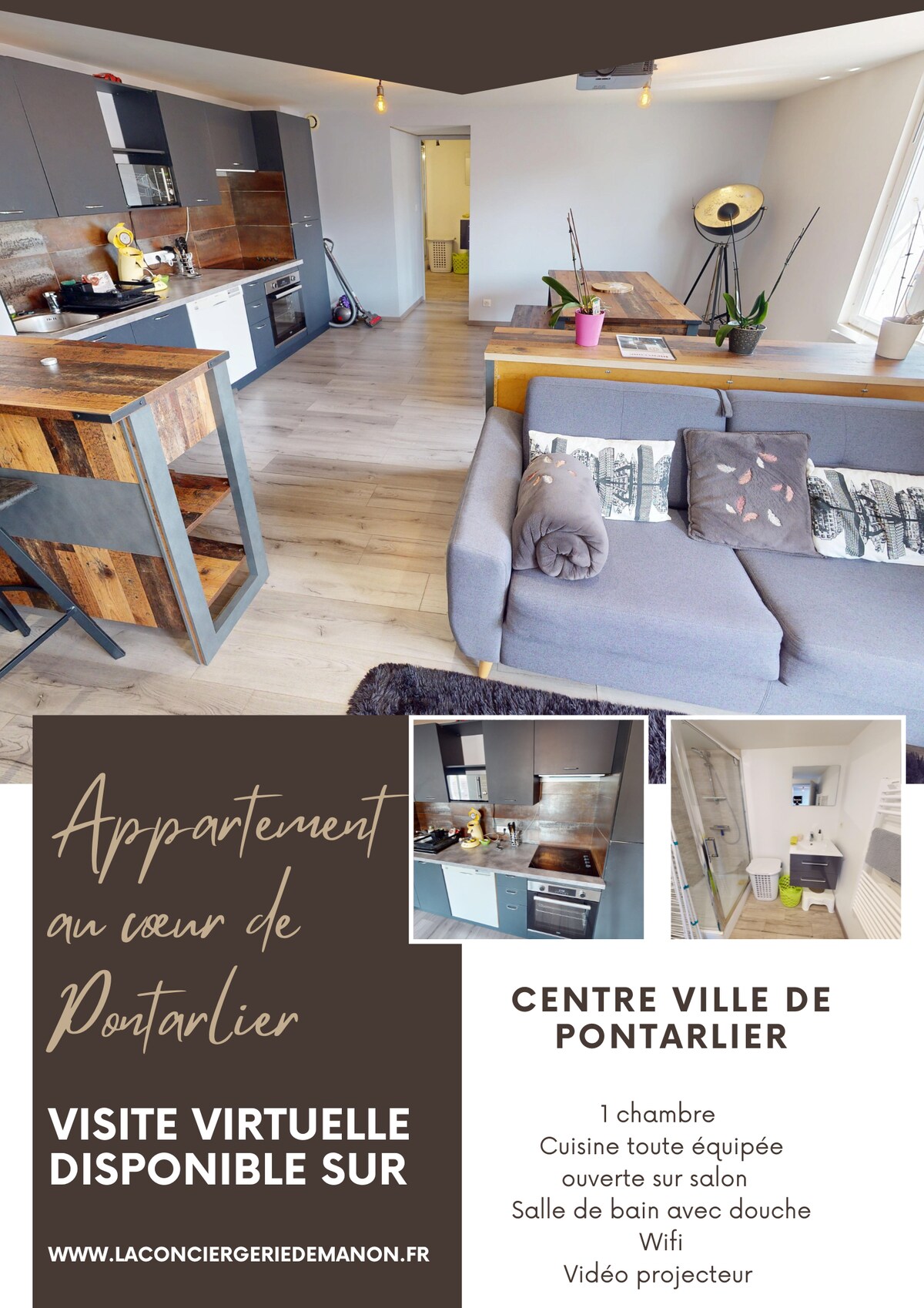 Studio cosy refait à neuf en hyper centre de Pontarlier. La gare est à 5 min à pied / parkings sont disponibles à proximité. Il convient à 2 voyageurs mais peut accueillir jusqu'à 4 voyageurs. Un espace nuit a été aménagé avec un lit double. Le canapé est convertible en lit 2 places (140x190). La cuisine dispose de tous les équipements nécessaires : plaques, hotte, four, micro-onde, machine à café expresso, réfrigérateur (avec congélateur), lave-vaisselle. Entrée sécurisée+Visiophone