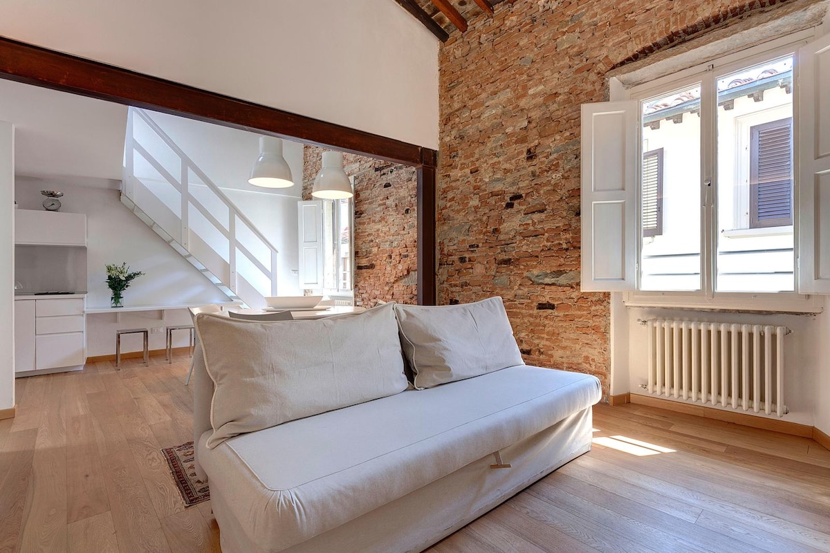 Il fascino autentico di Firenze trova posto all’interno di questo raffinato loft su due livelli che regala un perfetto equilibrio tra charme e comfort. Si trova in pieno centro storico, in una torre medievale nel quartiere di Borgo San Jacopo. L’appartamento è uno spazio emozionante dove si combinano muri in pietra, travi a vista, soffitti altissimi e pezzi di design, oltre a wi-fi,aria condizionata e cucina attrezzata. Il tutto a 3 minuti a piedi dal Ponte Vecchio e a pochi passi dagli Uffizi.