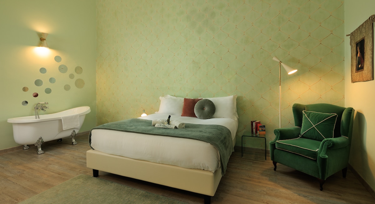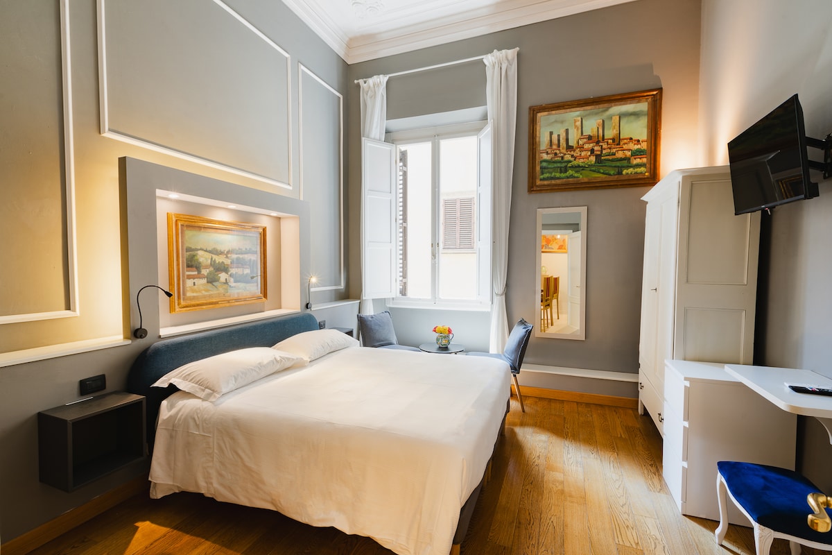 Enjoy Florence from your own private balcony in the Balcony Superior, a 30 m² studio designed for relaxation. Furnished with a king-size bed, sofa, and a fully equipped kitchenette, this apartment also includes Smart TV, free Wi-Fi, and soundproofing for a restful night. The balcony is perfect for morning coffee or evening sunsets over the rooftops.