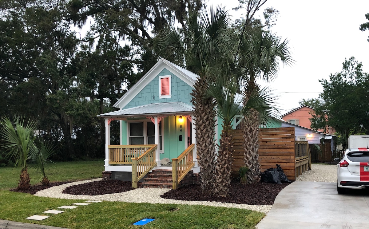 Stunningly renovated cottage combines modern amenities with vintage charm... * 2 master suites with queen beds * Quiet neighborhood walking distance to explore The Nation's Oldest City * Clawfoot tubs inside and out (along with showers, of course!) * Big screened-in porch with hanging daybed * Off-street paved parking * Fenced yard, Weber grill, gas fire pit * Fast Wi-Fi and Smart TV * 2 blocks to Fish Camp, Ice Plant and LaNuvelle * 10 minute walk to central downtown St Augustine