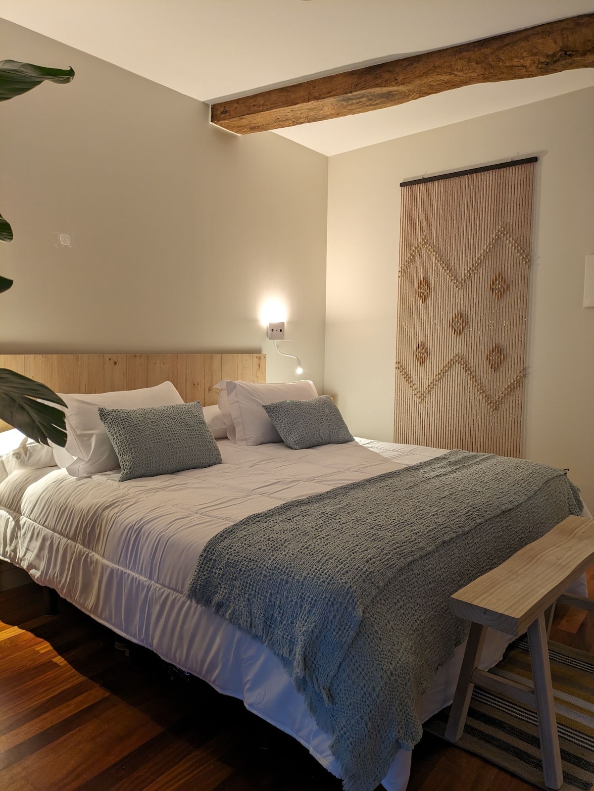 Apartamento de diseño en pleno centro histórico de Pontedeume. Edificio rehabilitado en 2020 con interiorismo y muebles de diseño a medida y elaborados a mano en maderas locales de castaño, eucalipto y haya. Situada en un 2º piso de la Rúa Ferreiros, se trata de una vivienda exterior, silenciosa y muy luminosa. Habitación con cama grande (150cm) y sofá cama italiano (140cm) en el espacio de salón. Comedor y cocina completamente equipada con lavavajillas; baño con ducha; y despensa/lavanderia