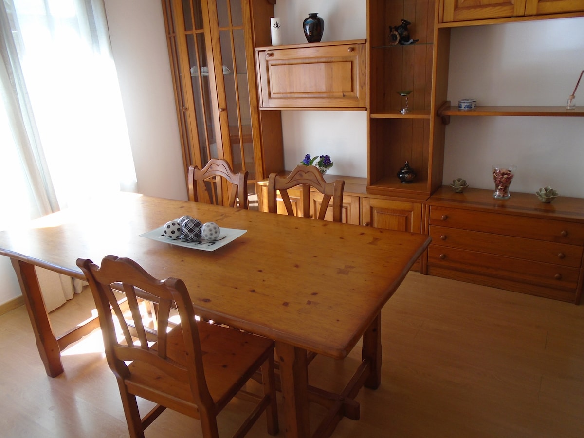 Apartamento a pie de playa, de 50m2 con una cama de matrimonio de 135 cm y televisión, un sofá-cama de 120 cm, un cuarto de baño, un salón comedor con televisión, cocina con todos los enseres, un cuarto de lavadora. Situado en la primera planta, dispone de ascensor, acceso a minusválidos y garaje incluido en el precio.