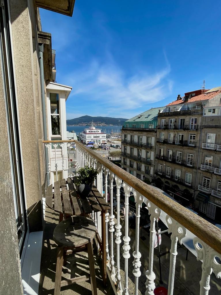 Una experiencia de lujo en este céntrico y luminoso apartamento equipado como una suite de hotel. Edificio histórico. El dormitorio, presidido por una confortable cama King size, Smart TV, balcón y un baño completo. El salón cuenta con una coqueta cocina americana, un comedor, Smart TV de gran formato, una cómoda mesa de trabajo junto al ventanal y un sofá- cama. Dos ventanales de tres metros de altura con balcones que se asoman a la “Puerta del Sol de Vigo”. Próximo al puerto- Islas-Cíes