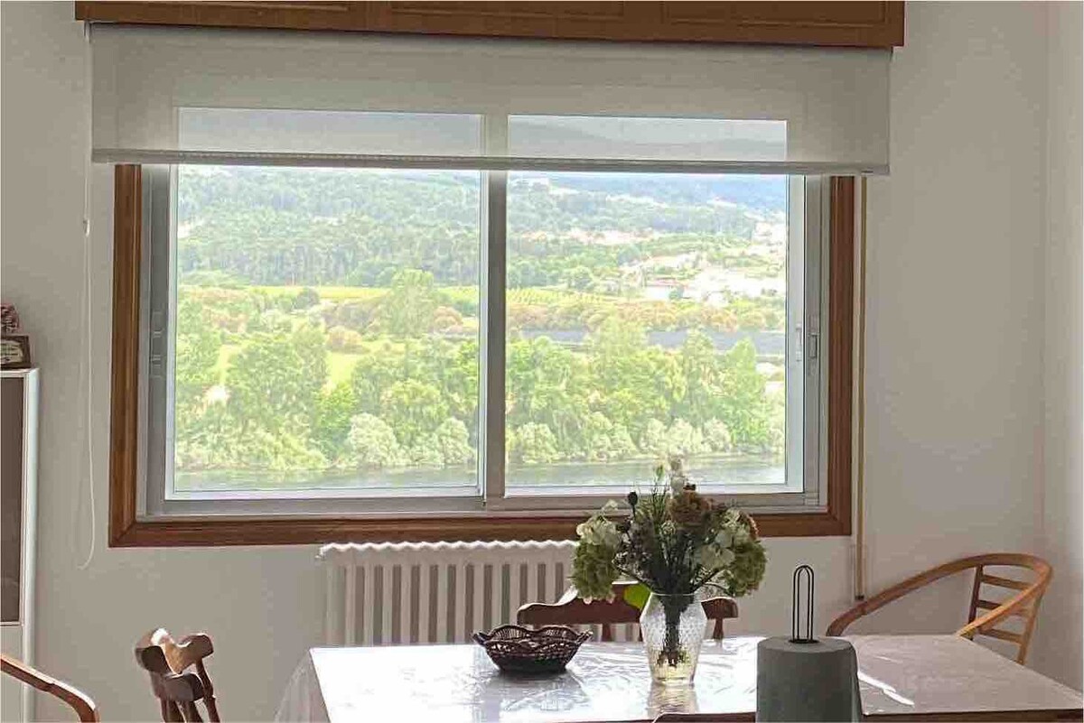 Con acceso privado e independiente durante toda la estancia, están a disposición de los huéspedes: 3 habitaciones: una con cama matrimonio, una con 2 camas y otra con cama individual, 2 baños, Cocina (con nevera, horno, placa vitrocerámica y microondas) , Patio lavandería y Salón. El espacio total es de 135 m2. Desde las ventanas posteriores (salón y cocina-comedor)se disfrutan las vistas del Río Miño y Portugal.