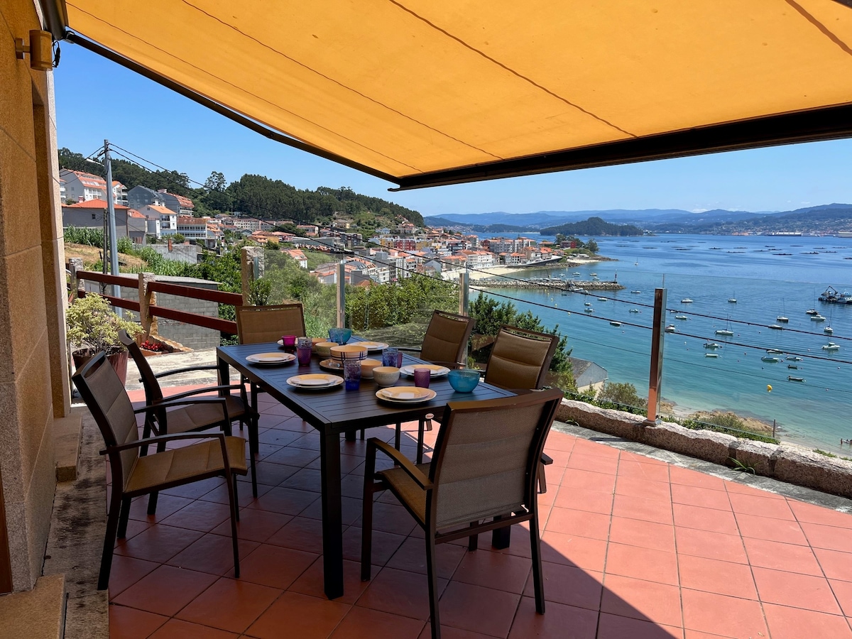 Casa unifamiliar en ayuntamiento de Sanxenxo, al pie del pueblo marinero de Raxó, tres habitaciones dobles con baño y una habitación abierta con 3 camas. Terraza y jardín con enormes vistas a la ría de Pontevedra y terraza superior con inmejorables vistas. Acceso peatonal a 5 min, sin cruzar carreteras, al pueblo de Raxó y su playa. Ubicación que ofrece la tranquilidad de una pequeña población y a 5 minutos en coche del ocio que ofrece Sanxenxo. Calefacción y Aire Acondicionado. Parking. WIFI