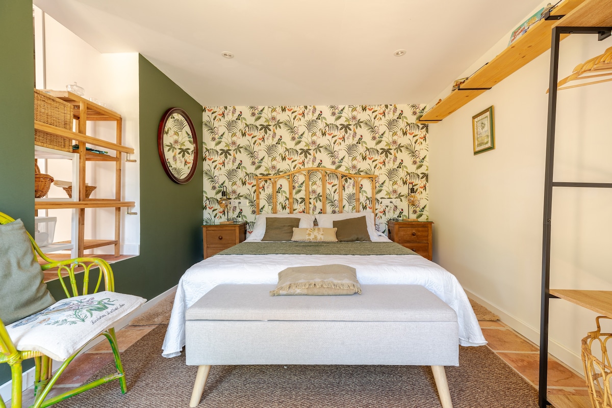 Es una casa de invitados ,muy acogedora, formada por cocina y salón abierto ,un baño con plato de ducha grande cerrado con mampara de cristal ,mueble de tres cajones donde encontrarán sus toallas secador de pelo y japonés.un dormitorio con cama de un metro cincuenta y ventana con vistas a la ría de vigo ,cuenta con una terraza con barbacoa y un estanque de peces.un sitio ideal para desconectar .