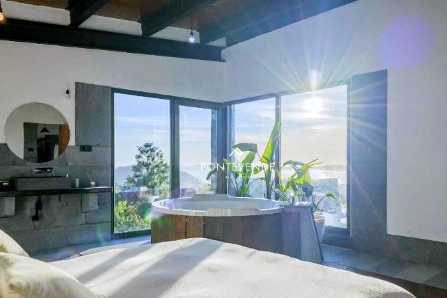 Estudios diseñados en concepto abierto, equipados con una pequeña cocina, baño privado y jacuzzi junto a un gran ventanal dónde poder disfrutar de las impresionantes vistas a la ría. Además tienen un pequeño balcón dónde poder ver el atardecer por la noche.