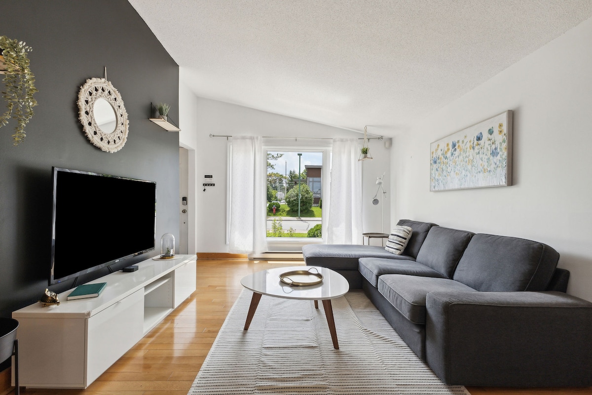Discover our beautifully decorated and cozy apartment in Hull, minutes away from downtown Ottawa and Gatineau Park. The bright and roomy lower level is accessed through a private entrance with a simple digital keypad. We offer private parking, a top quality mattress, coffee, Netflix, a patio, a spacious rainfall shower. Take advantage of the convenient laundry and kitchenette facilities. Casino, restaurants, malls within walk. Your perfect stay awaits! For 3-4 guests, see our 2BR listing.