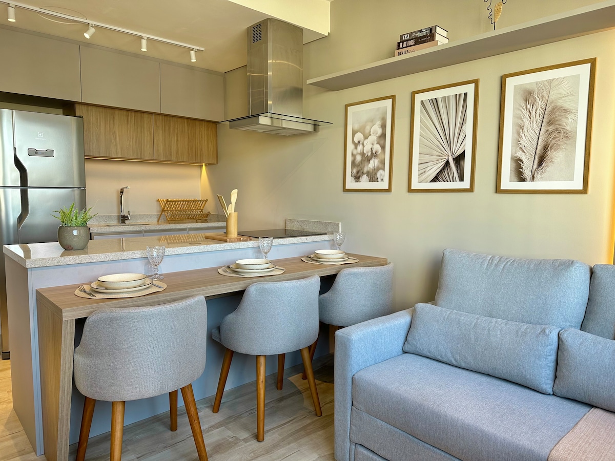 🌱 Apartamento muito aconchegante! Temos: cama confortável, 4 travesseiros, cozinha com microondas e panelas, Airfryer, chaleira elétrica, cafeteira para espresso e prensa francesa, chuveiro quente no banho, toalhas limpas e secador de cabelo, colchão de solteiro extra, SmartTV, e WiFi! Iluminação solar! 👇 👉 Vaga garagem, Portaria 24h, Terraço 19º, Lavanderia, Piscina, Churrasqueira, Academia, Espaço Cowork e Elevadores! Salão de Festa e Gourmet, e espaço pet tb! Mande uma mensagem!