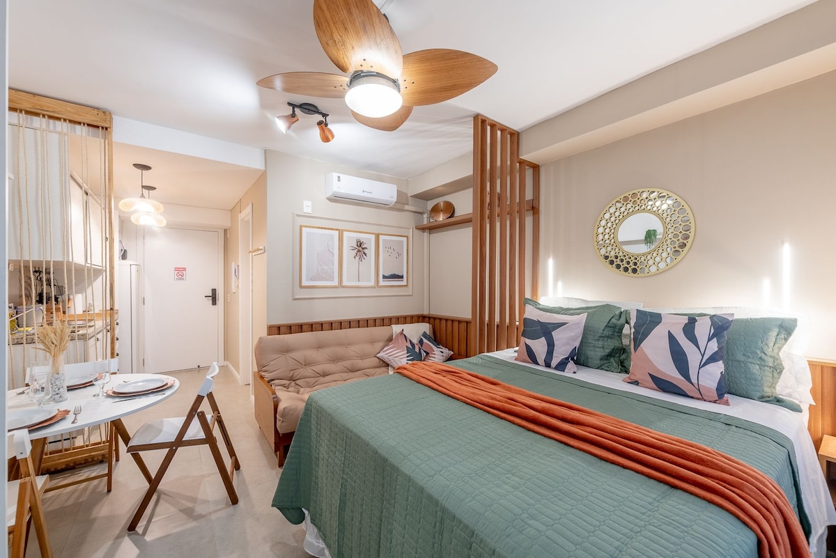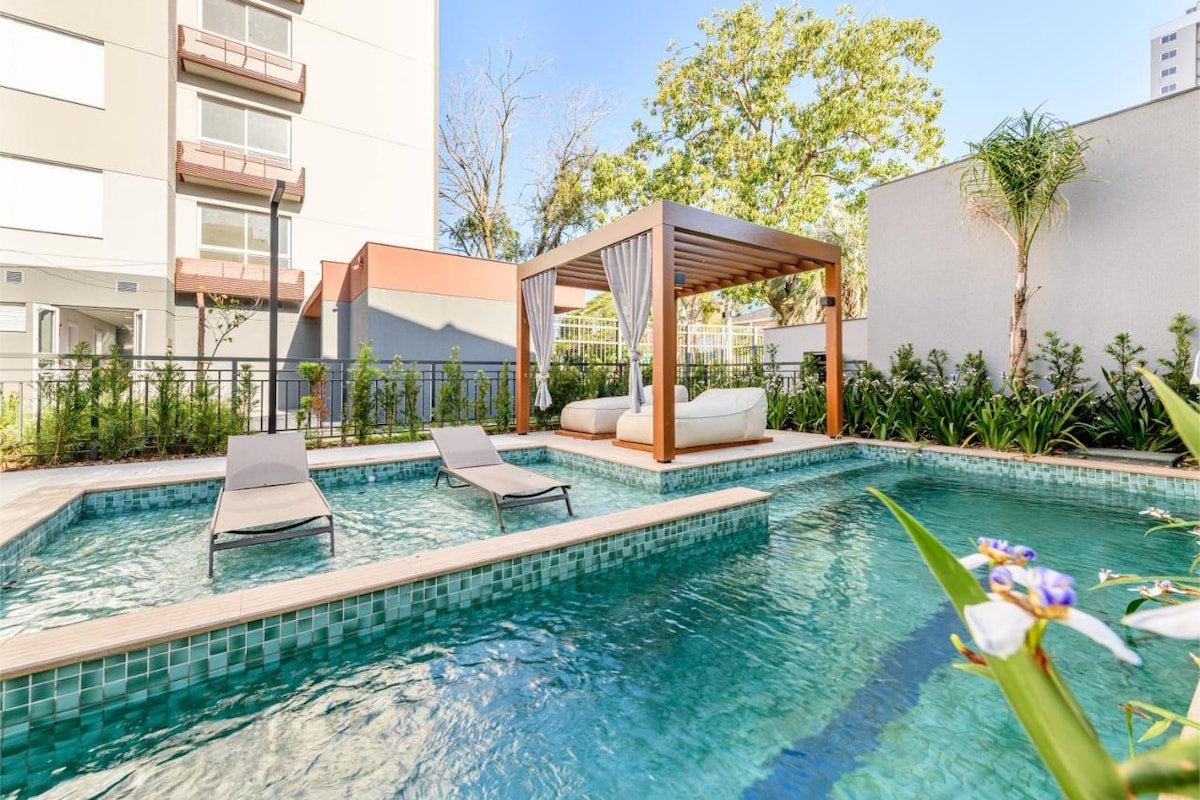 单间公寓/游泳池/健身房/露台/距离Pucrs 4分钟