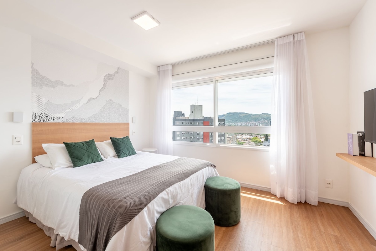 ⭐️ Agora automatizado com Alexa! SmartTV 50' com LED, vaga de garagem gratuita, portaria 24h, 3 hóspedes (colchão), piscina, academia, lavanderia, rooftop 19° andar e espaço co-work 24h para os hóspedes! Cozinha com Air Fryer, micro e torradeira! • 2min ⟶ PUCRS • 15min ⟶ Consulado e Centro • WiFi veloz • Elevador • Ar condicionado • Netflix, YouTube, Disney+, Amazon, GloboPlay, + • Check-in Flexível • Aceitamos Pets (mediante aviso) • Supermercado próximos! Toalhas e roupa de cama inclusos! :)
