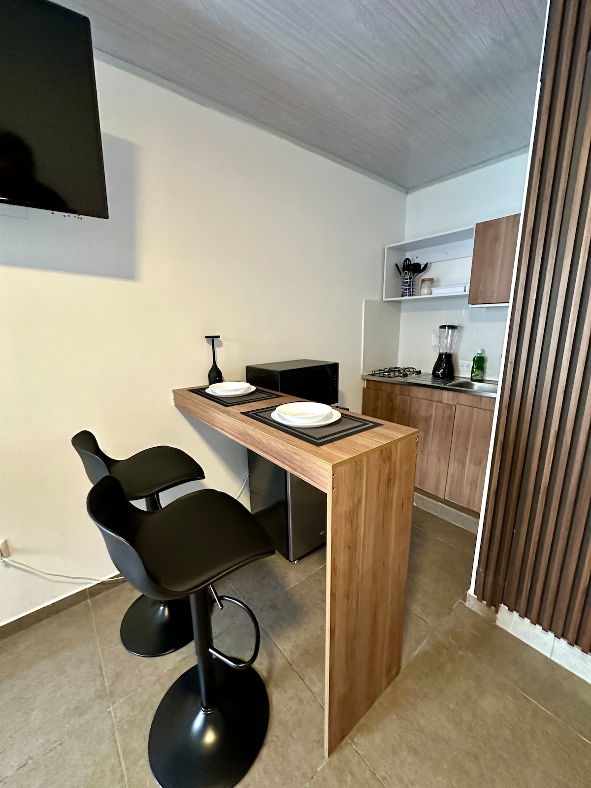 • Studio Located in a exclusive and safe sector • Modern, fully furnished Loft • Amazing mountain and city views • Air Conditioner • High speed 250 Mbps WiFi • Loads of nature around • Pool + Hot Tub in the common areas • 5 mins by car to best restaurants, cafes, supermarkets and the famous Ecoparque Rio Pance • Fully stocked kitchen with appliances • 55" Smart TV w/ all Apps • Free Parking
