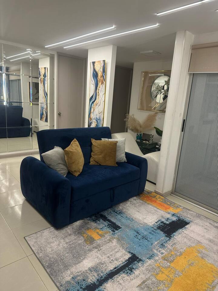 ApartaSuite moderno en el corazón de Cali – Confort. Disfruta de una experiencia única con una ubicado estratégica en la zona céntrica de Cali. Perfecto para viajeros que buscan comodidad, tranquilidad y cercanía a todo lo que la ciudad tiene para ofrecer. Zona húmeda con jacuzzi, ideal para relajarte después de un día de turismo o trabajo. Estás a pocos pasos de zonas verdes, avenidas principales, estaciones de transporte público, supermercados, restaurantes y bares. ¡Vive una gran experiencia!