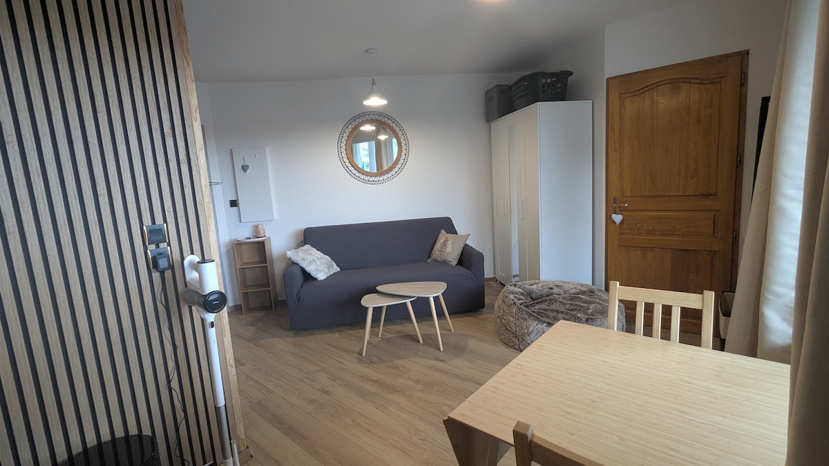 Petit studio récemment refait à neuf au troisième étage situé dans le centre ville d'Embrun. Climatisé. Faible hauteur sous plafond. Équipé d'un balcon pour admirer les montagnes alentours. Pour 2 personnes avec un canapé convertible très confortable. Volet roulant électrique et store occultant pour le Velux. Parking gratuit à proximité. Nous fournissons le linge de toilette ainsi que le linge de lit. Une cafetière a filtre est a votre disposition ainsi q'un paquet de café.