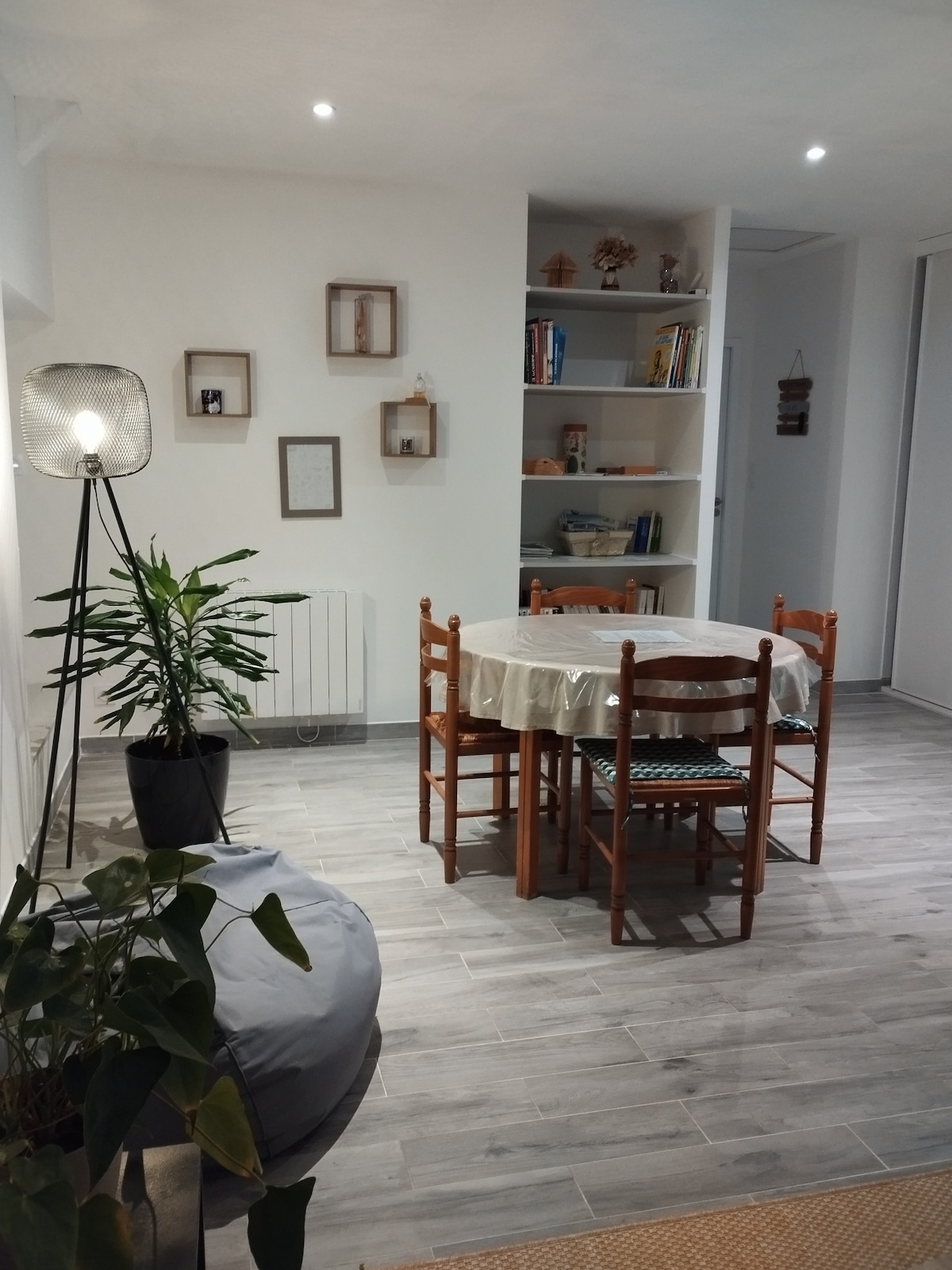 Studio de 30m² dans notre maison, refait en 2022. Pour 3 ou 4 personnes. 1 lit 140x190 + 1 clic-clac, une salle de bain avec douche et baignoire, une cuisine équipée. Draps et serviettes de bain fournis. Parking gratuit. Poussette canne, lit parapluie et chaise haute en prêt sur demande. À 5 mn en voiture du centre de Baud et de la 4 voies. À 10mn en voiture du Clos du Grand Val. Vous disposez d'une partie de la terrasse avec une table pour les repas en extérieur ainsi qu'un accès au jardin.