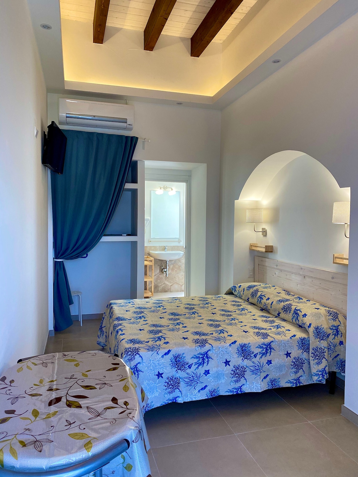 TRADIZIONE DI FAMIGLIA Costruito negl’anni ottanta, dispone di venti camere strutturate su due piani ed arredate in modo sobrio e funzionale. Tutte e venti le stanze sono sia ad uso singola che matrimoniale; e in quelle più grandi, c’è la possibilità di aggiungere un terzo letto. Ogni camera è dotata di servizio privato con doccia, telefono con chiamata diretta, televisione, Wi-FI gratuito e terrazzino o balcone, dalla maggior parte dei quali si può godere di una splendida vista mare.