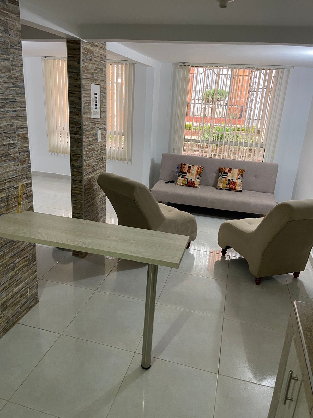 Cozy new studio-apartment, delivered in February 2023, Wi-Fi 300 Mbps, Living room, Dining room, Queen bed + Sofa Bed, private washer-dryer, Play station 4, smart TV, small safe, desk with Laptop included, Terrace with outdoor furniture, free parking outside the building . One of the quietest, most exclusive and safest neighborhoods in Popayán. It is located 5 minutes from the Campanario shopping center, 15 minutes from the historic center and 15 minutes from the airport, by car.