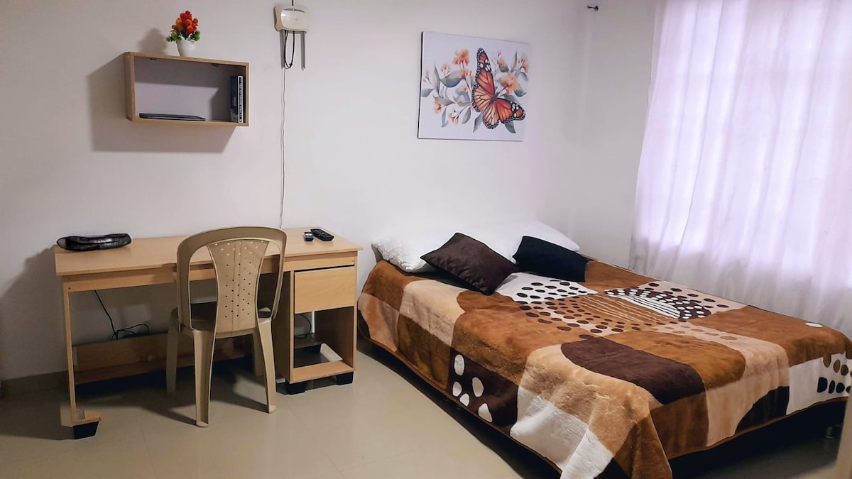 es un apartaestudio muy bien ubicado, cerca al centro de la ciudad con una excelente vista panoramica, a 5 min del Aeropuerto y del terminal de trasporte caminando,, a 400 mts del sector histórico, en una zona donde encuentras almacenes de candena como el exito y olímpica, y varios restaurantes y sitios de comidas rapidas, el apartamento es comodo y donde se puede descanzar tranquilamente por ser zona una residencial, tu familia estará cerca de todo si te hospedas en este alojamiento.