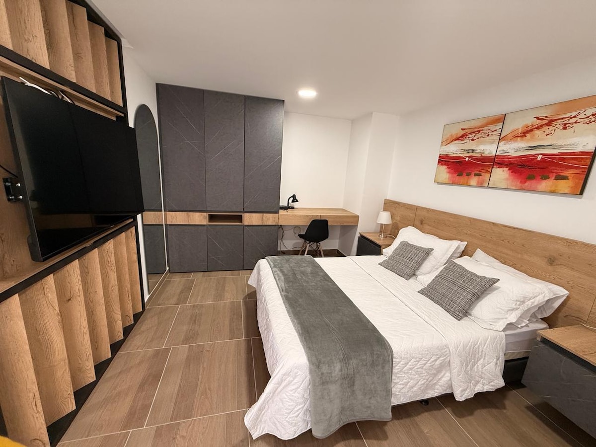 Disfruta de estrenar un loft moderno y totalmente equipado para tu comodidad. Cocina air fryer, licuadora, nevera y todo lo necesario para preparar tus recetas favoritas. Relájate con TV 4K y Netflix, WiFi rápido y un cómodo espacio de trabajo. Baño con ducha impecable, lavadero y tendedero. Todo es de excelente calidad: persianas modernas, amplio armario y acabados perfectos. Ideal para estancias cortas con estilo, confort y ubicación céntrica. GYM dotado y espacio de coworking sexto piso.