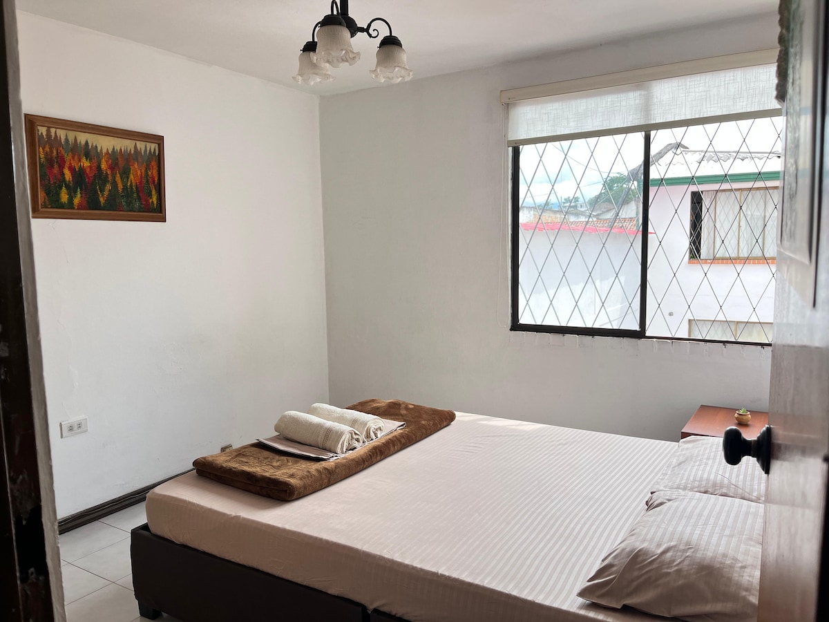 Cozy apartment in the Campo Bello area of Popayán. Ideal for 1 to 3 guests. It features 2 bedrooms, 1 bathroom, a living-dining area, a fully equipped kitchen, WiFi. Just minutes from Campanario Mall, restaurants 🍽️, the city center, and entertainment areas. Despite being close to everything, the environment is peaceful 🛏️ — perfect for relaxing, working, or exploring the city.