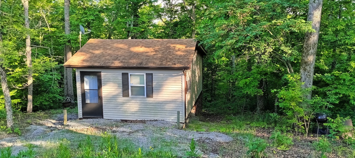 New construction Cabin. Relax at this 2 bedroom, 1 bathroom cabin in the woods. Surround by the Shawnee National forest, you have miles and miles of trails to hike and explore. If you would rather stay home and relax, there is a fully equipped kitchen, TVs in family room and both bedrooms, shuffle board, covered porch with furniture, a fit pit, and a park style grill. Just a 15 minute drive to Golconda - you are close enough to civilization but far enough away to enjoy peace and quiet