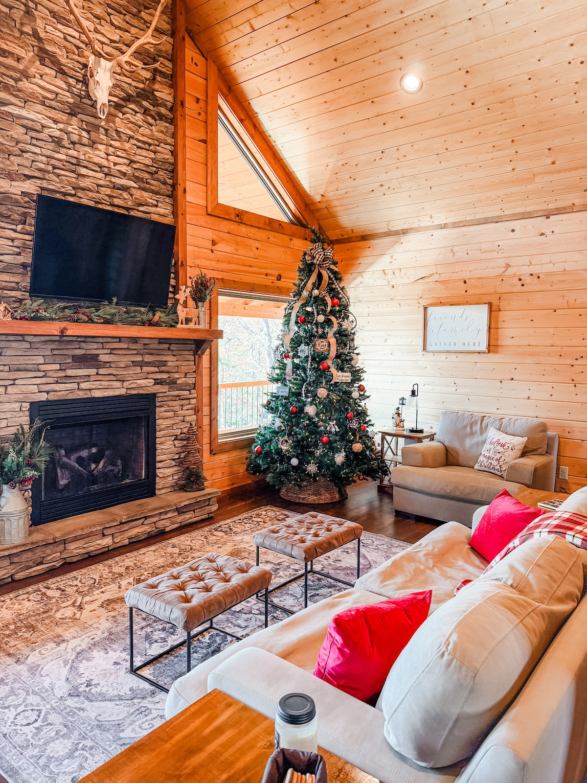 Luxury log cabin near Big Spring, the Current River & Ozark National Scenic Riverways—just 1 mile from town! 5 bedrooms (1 king, 3 queen, 1 twin bunk), 3 full baths, two large living rooms, fireplace, outdoor kitchen, gas fire pit & scenic views. Family-friendly with yard games & kid amenities. Explore river fun with local outfitter, The Landing.