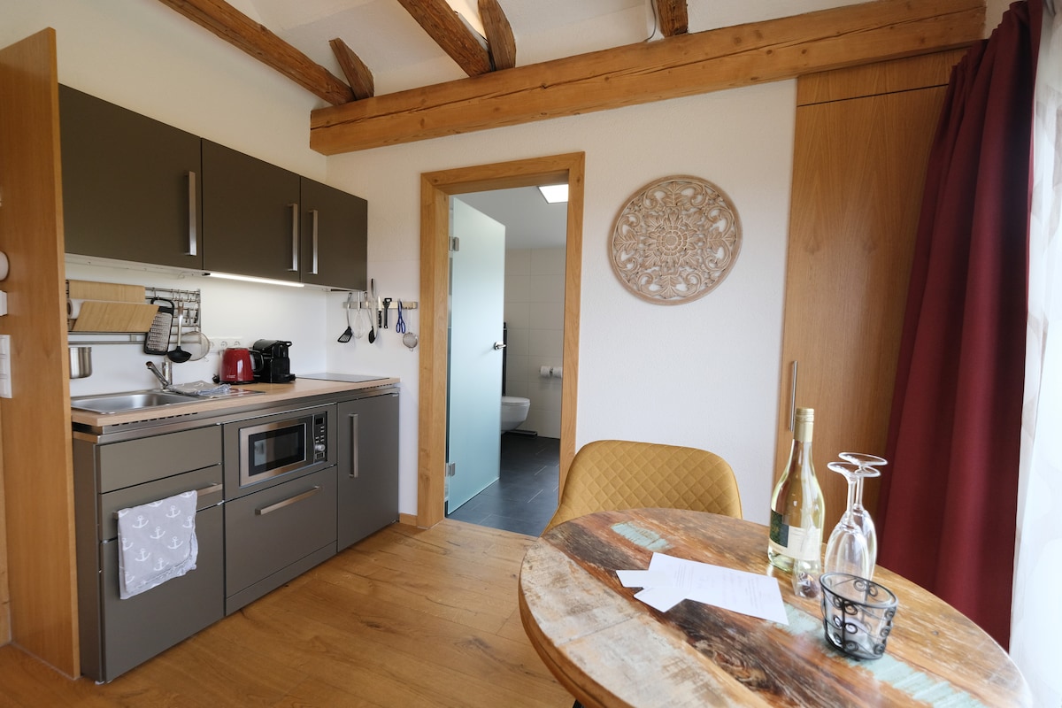 Deine Auszeit für zwei in der Wohlfühloase am Trausdorfberg: gemütliches Natur-Apartment mit großer Glasfront und französischem Balkon mit Blick ins Grüne. Unser Hof mit Hühnern & Schafen und herzlicher Atmosphäre lädt zum Entschleunigen ein. Sauna & Whirlpool exklusiv nutzbar dank Reservierungssystem. Nachhaltig gebaut mit Naturmaterialien, Genussoase mit regionalen Produkten am Hof. Zwischen Graz und der Thermen- & Genussregion Südoststeiermark – perfekt für Ruhe & Genussmomente.