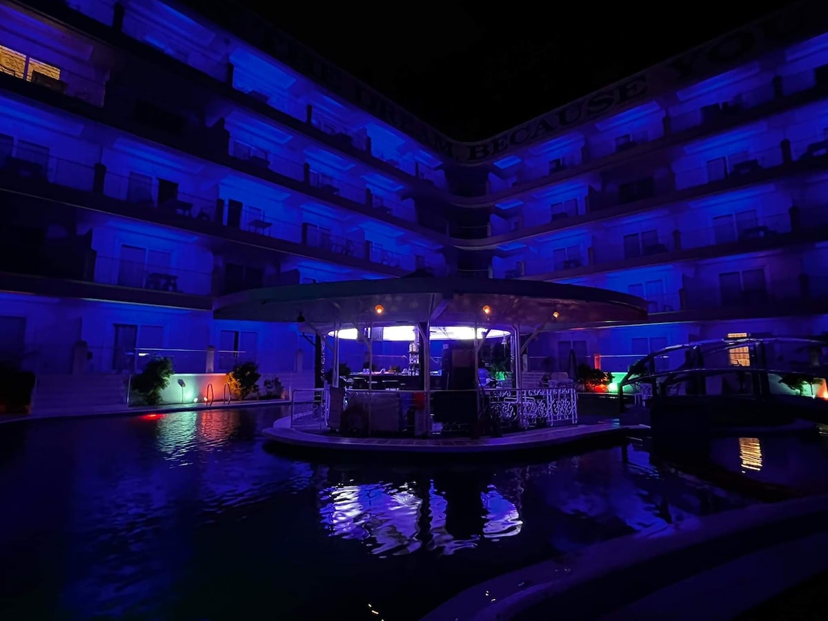 带泳池、健身房和酒吧的 1 卧室公寓