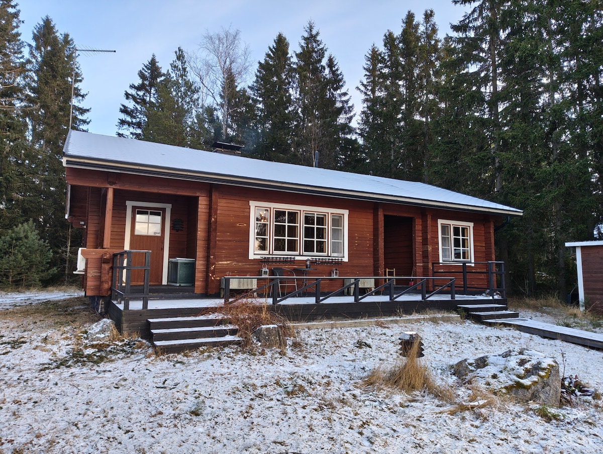 It is easy to relax in this unique and peaceful resort. Nikolai's cottage is located higher on the cliff and there is nature nearby. The house is a log house moved from Siikainen to its current location, the house has been renovated with respect for the old. The house has an calm energy and that's why there is no wifi, television, radio, etc. installed there. However, there are the necessary amenities. There is also air cooling/warming system in the kitchen and warm whirlpool tub outside.