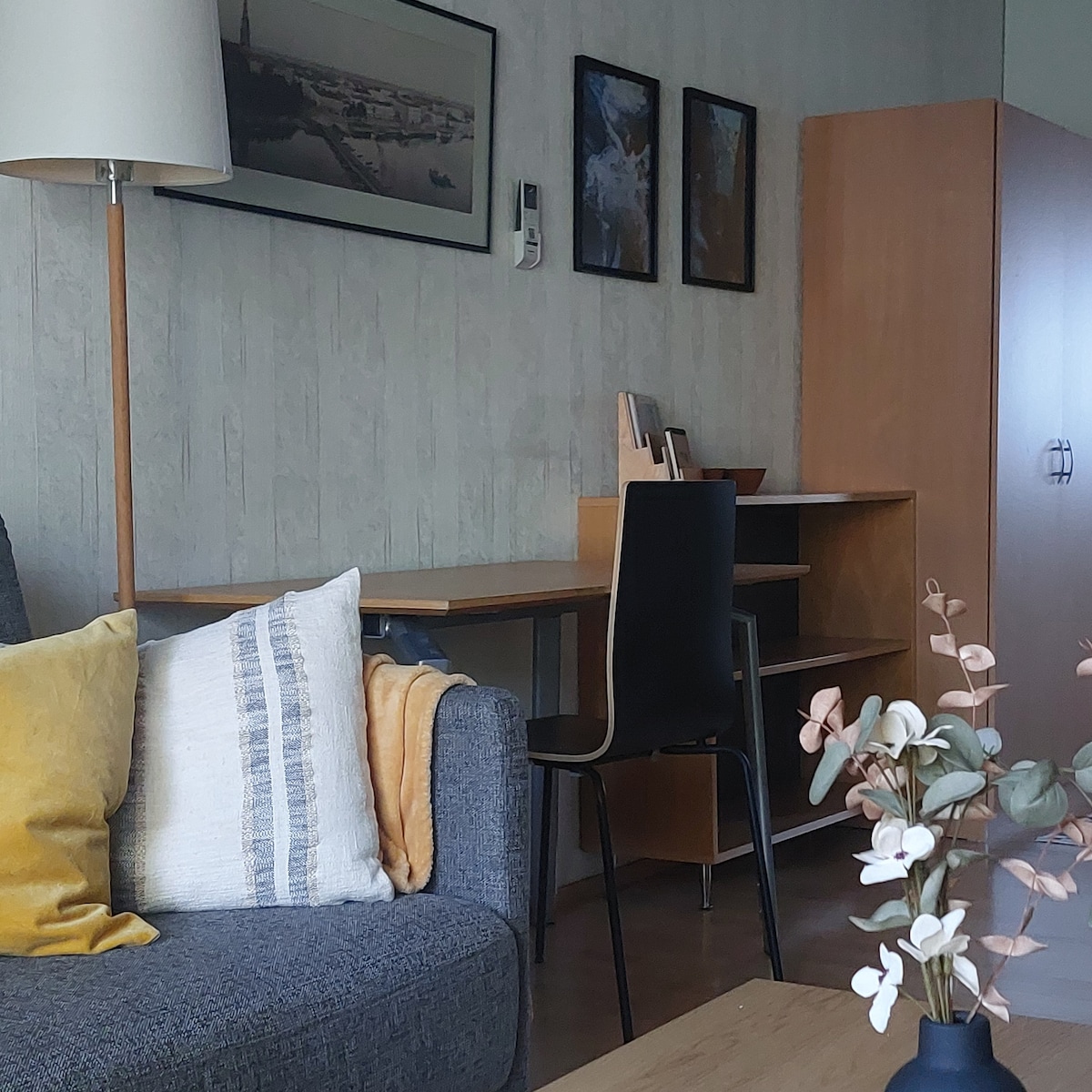 Enjoy a stylish apartment at the central Pori. 34m2 studio apartment in Teljänkatu, Pori. Easy access because it is located in the first floor. Kitchen is well-equipped with oven, microwave, dishwasher, rice cooker and coffee maker. Apartment with small private patio. Parking place 2min walk (free) Towels, bed sheets and blankets are available