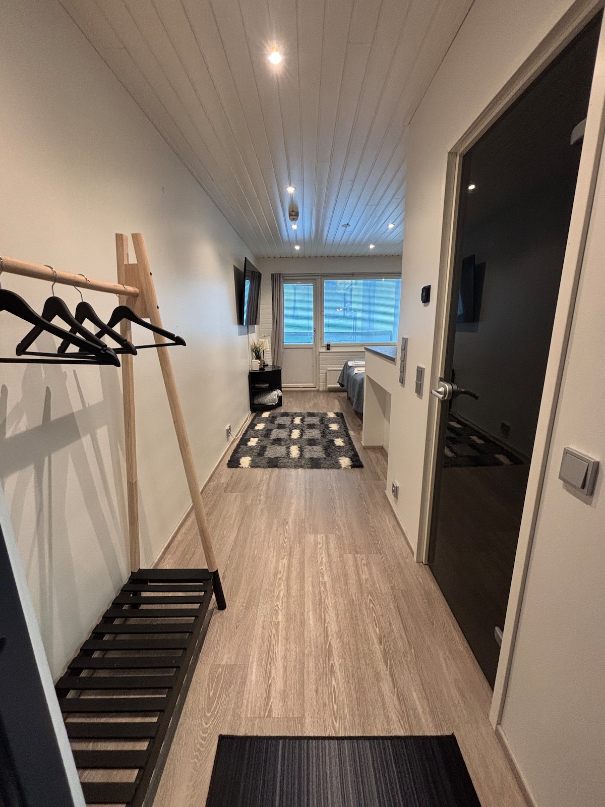 Vuonna 2025 valmistunut kotoisan moderni yksiö omakotitalon erillisessä piharakennuksessa vain 3 km keskustasta lähellä kivoja ulkoilureittejä. Asunnossa jääkaappi pienellä pakastimella, uuni, liesi, mikroaaltouuni, vedenkeitin, leivänpaahdin sekä kapselikahvinkeitin. Puusauna ja kamina lämpeävät pyydettäessä. Mahdollisuus sähköauton lataukseen (type2). Erillinen latausmaksu 8 €/lataus. Sisäänkirjautuminen klo 14 alkaen, uloskirjautuminen klo 11.