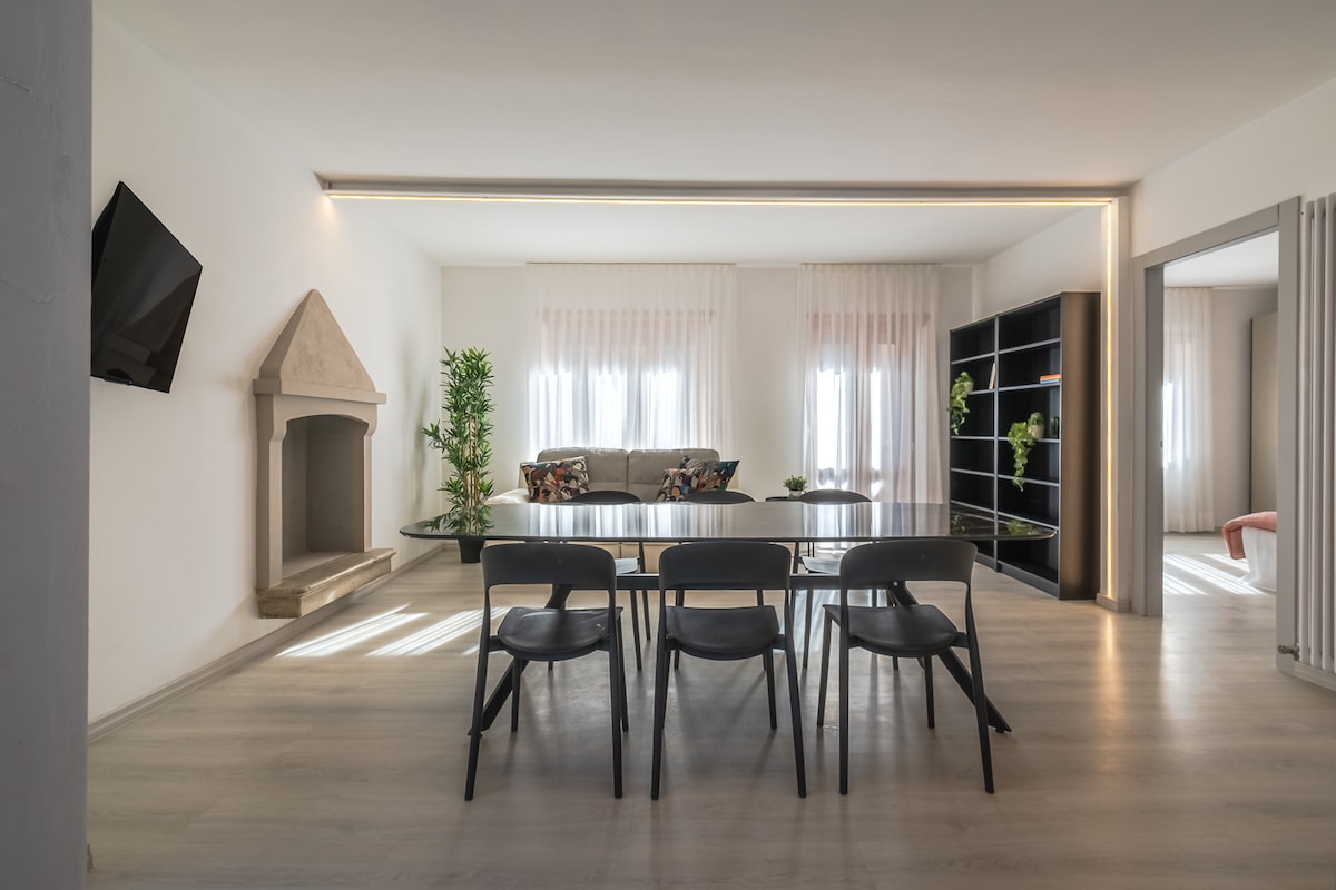 You are just a few minutes walk from the historic center in a renovated residential complex along a centuries-old canal from where an ancient fireplace stands out as a witness to industrial archeology. Thiene is a city rich in art, history and traditions and is located at the foot of the Asiago and crowned by the suggestive foothill hilly area, which is why it has become a meeting place and preferential center for commercial, agricultural and industrial interests in the Alto Vicentino.
